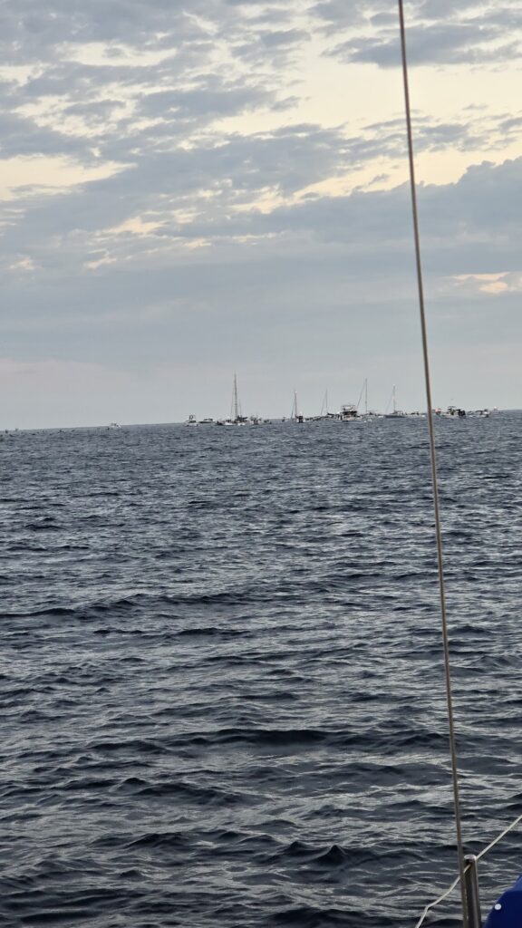 Kim and Dorian arrived on the ferry. I should have stayed down, but captains don’t get to quit. The Captain’s meeting waited. I forced myself into the dinghy, teeth clenched, hands trembling. On shore, I nodded through instructions I could barely hear, my body screaming to collapse.