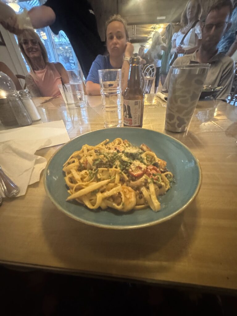 That night we sat at the restaurant. Kim bought dinner for the crew, as tradition dictates. I stared at a poke salad, willing myself to eat something. The lights blurred, voices faded. Eventually Alec took me back to the boat, where I folded into my bunk with nothing but my bucket for company.